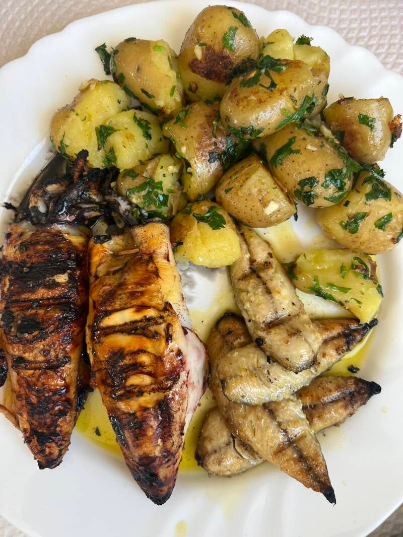 Lulas Grelhadas, apanhadas à Toneira algures na meia praia e umas cavalinhas escaladas grelhadas.